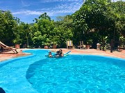 Practicas y confortables habitaciones con cama doble y cama sencilla o 3 camas sencillas según disponibilidad. Baño privado, ventilador y con vista al jardín. Desayuno incluido